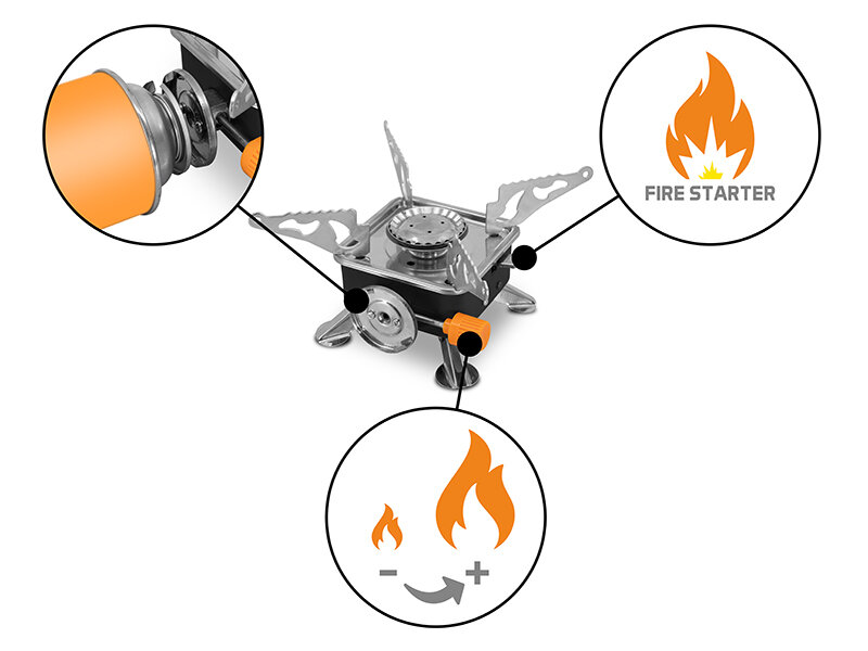 Ce réchaud puissant et peu encombrant vous surprendra par sa variabilité et sa facilité d'utilisation. Il est convenable pour des activités en plein air comme la pêche, le camping ou le tourisme de montagne. Grâce à sa petite taille, il est possible de le placer dans votre sac ou sac à dos. Il ne prendra presque aucune place et sera toujours prêt à réchauffer votre boisson ou votre repas.
