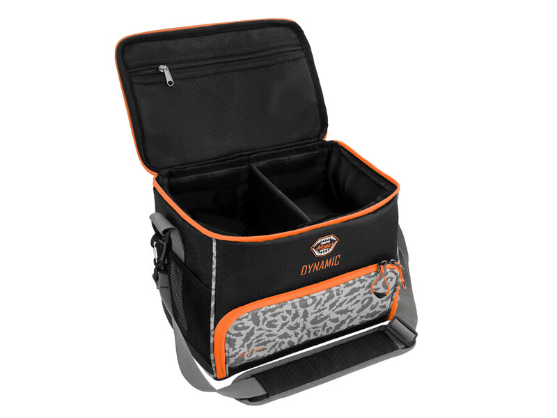 Un sac pratique de la série ATAK! conçu pour les pêcheurs des carnassiers, les enthousiastes de la pêche dynamique qui veulent découvrir tous les coins intéressants dans leur lieu de pêche. Dans la partie supérieure se trouve un espace de stockage avec une cloison réglable pour ranger vos affaires. Sur la partie intérieure d'un couvercle est une poche à zip pour les petits outils. Grâce au matériel en maille vous savez toujours ce qui se trouve dedans. La partie inférieure contient deux boîtes plastiques pour vos leurres. Les boîtes sont séparées par une cloison amovible et les cloisons dans les boîtes sont aussi réglables. Il est donc à vous d'arranger l'espace d'après vos besoins. Sur les côtés du sac se trouvent les poches en maille pour les oublis ou les ajouts de dernière minute. Le sac est pratique, solide et durable, rembourré de chaque côté en épaisseur de pour la protection maximale de votre équipement. Une partie basse a une armature imperméable qui protège le sac dans l'environnement humide. Cette armature aussi rend le sac très stable et conserve sa forme.